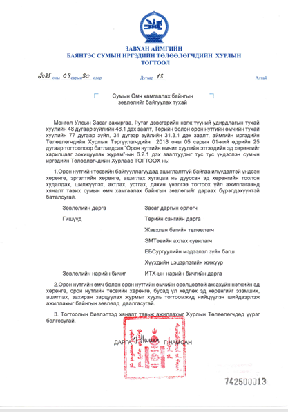 ИТХ-ЫН ХУРАЛДААНЫ ТОГТООЛ