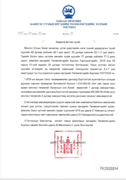 ИТХ-ЫН ХУРАЛДААНЫ ТОГТООЛ