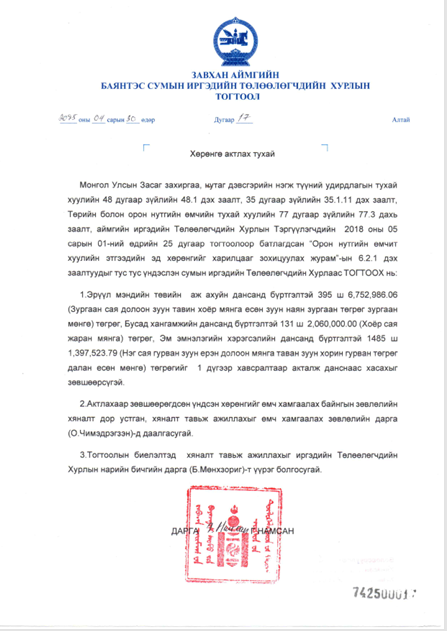 ИТХ-ЫН ХУРАЛДААНЫ ТОГТООЛ
